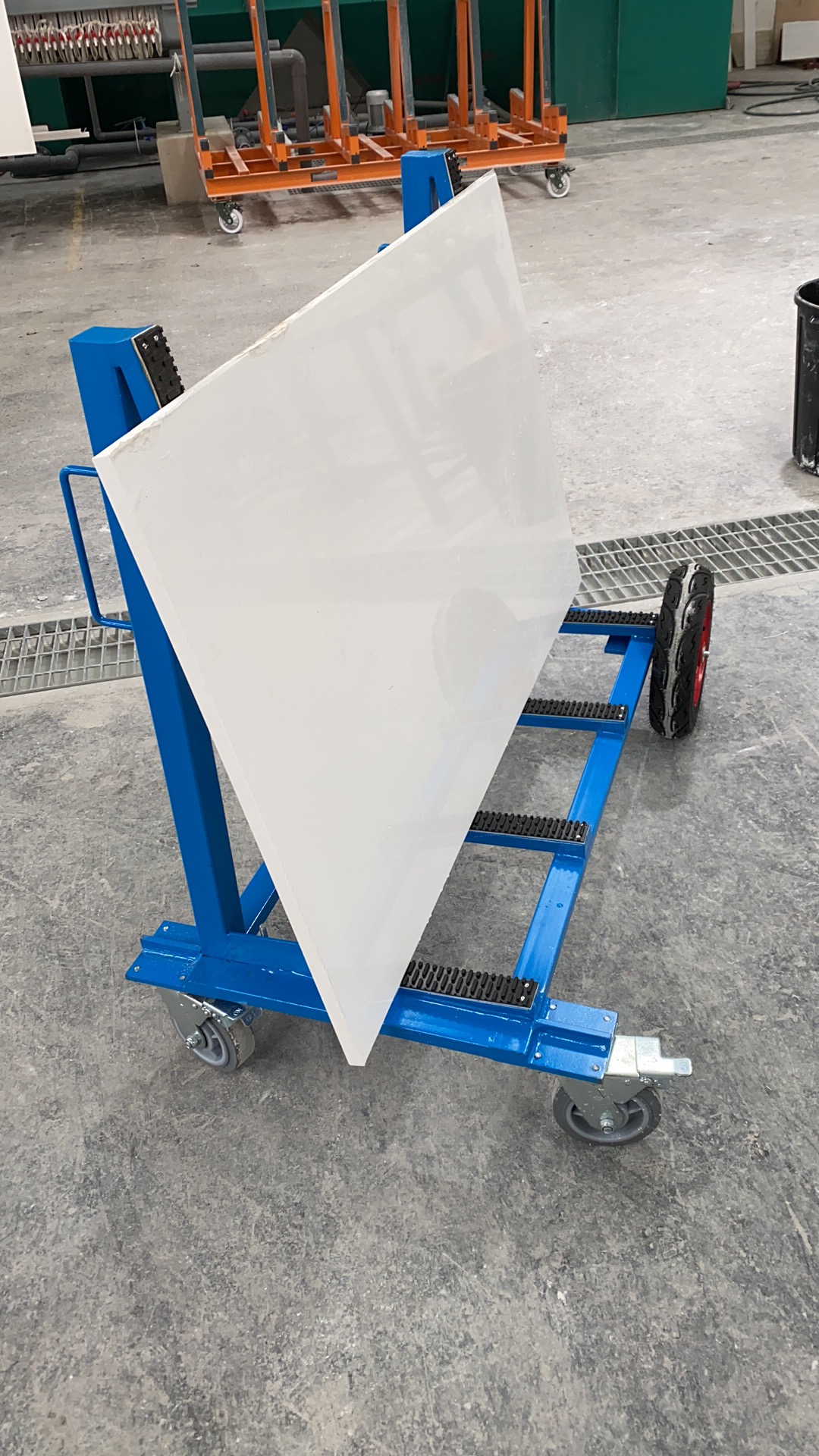 此設計用于廠區(qū)內外的板材運輸和儲存,支架表面覆蓋一層橡膠層,保護板材免于刮傷。