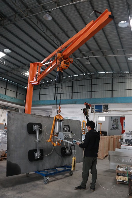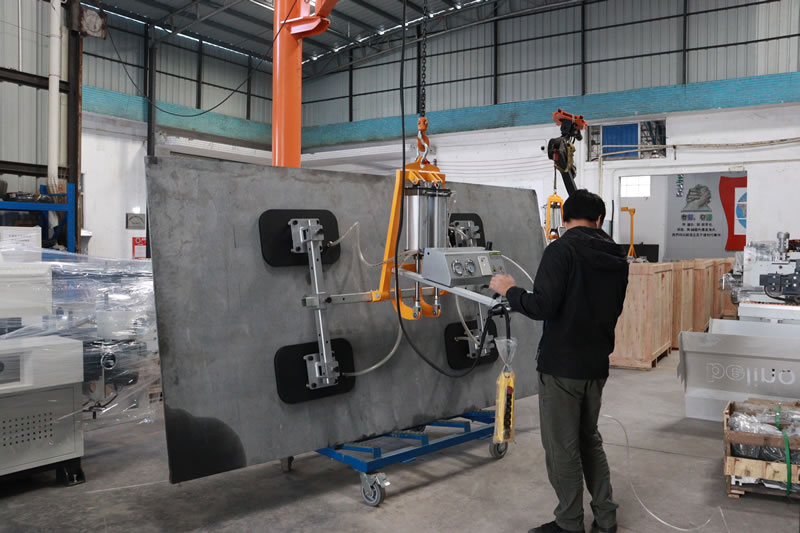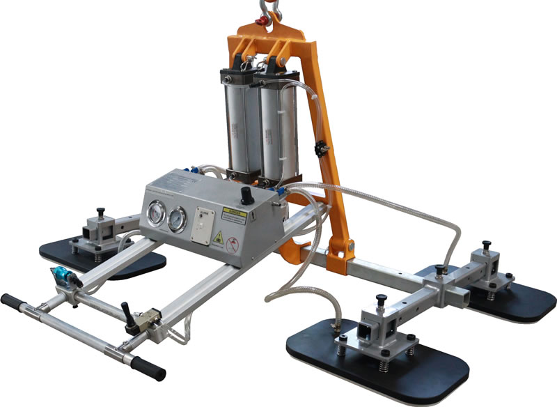 This vacuum lifter is designed to lift smooth or rough marble and granite slabs. Pneumatic vertical-horizontal tilting 0 to 90°.